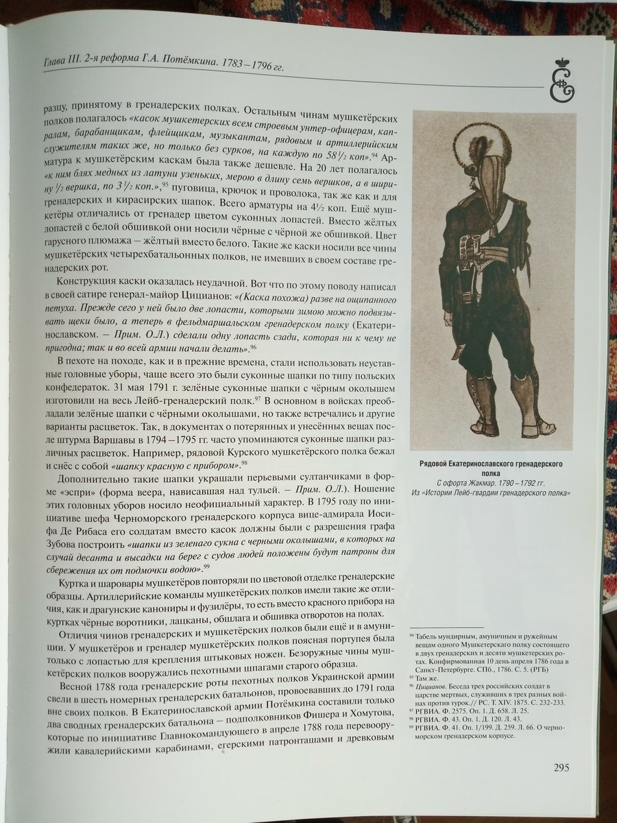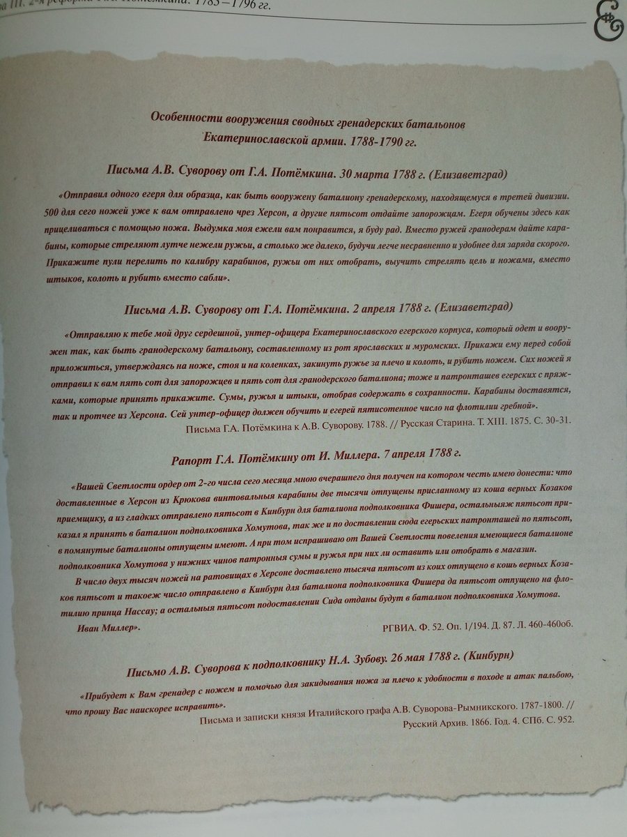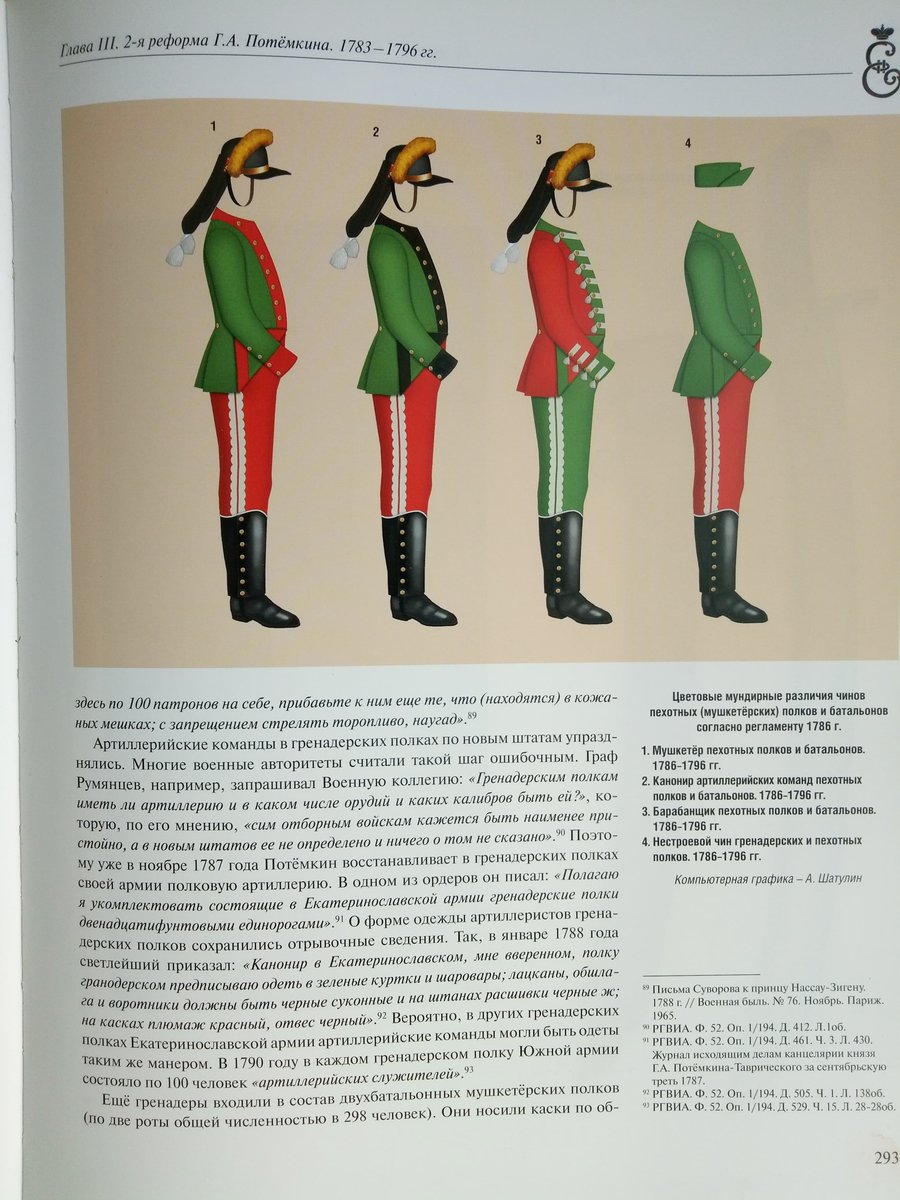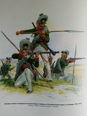 У меня вопрос по мундирам гренадеров екатеринославского полка, мушкетеров и егерей . Период 1780-1796 года . Мало инфы., очень мало подробных фоток мундиров и головных уборов . Практически нет фоток мундира младших офицеров вышеперечисленных частей. Если есть инфа - прошу помочь.