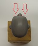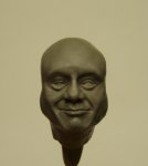 Свод черепа постарайся сразу сделать симметричным не взирая на то, что в будущем может быть волосяной покров-шлем-корона и т.п. и относительно "позвоночника" тоже поточнее размести материал.